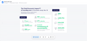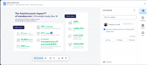 Esto agiliza el flujo de trabajo y promueve una mayor eficiencia, ya que todos los comentarios y discusiones quedan registrados y vinculados al archivo correspondiente. Ya sea que estés colaborando en un proyecto, revisando un documento o simplemente compartiendo ideas, la función de comunicación interna en monday.com permite mantenerse conectado con tus compañeros y maximizar la productividad en un solo lugar.
