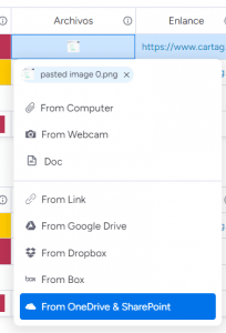 Con la columna “Archivos” presente en cada tarea de nuestros paneles podemos poner todos los archivos que queramos (hasta un límite máximo de 500MB).